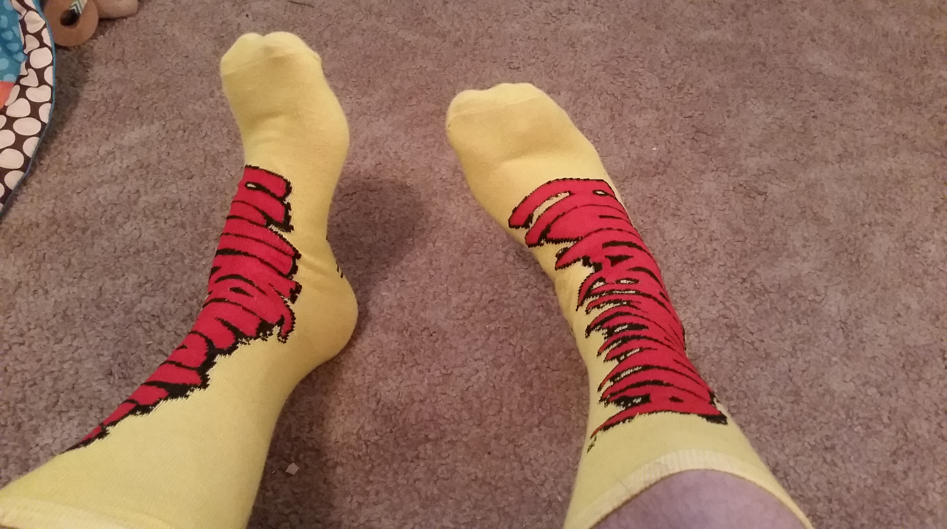 Featured #dailyselfie wearing 22nd St Barbell hat, Lewis and Clark Jazz Fest cut-off (XL btw), Daredevil socks (with the little horns on the side), and my old Fila (yard mowing) shoes.